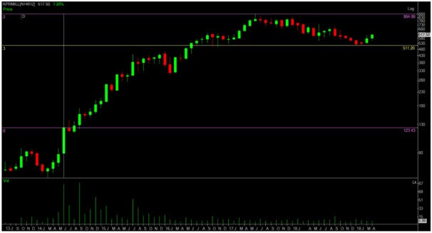 Given below is the technical chart of KPR MILLS for your reference.