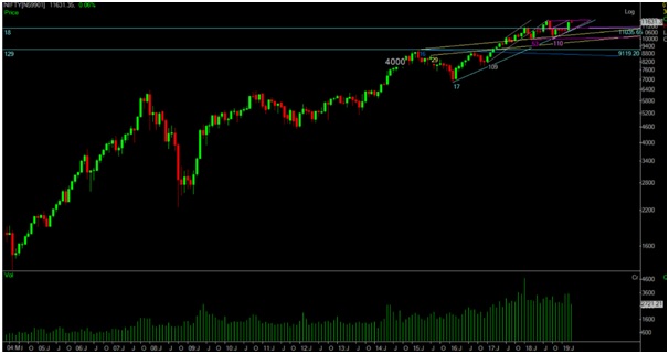 The same concept of PE doubling can be applied to NIFTY which has broken out on upside from 2008 top, this year above 28-29 levels. So, target of double top on PE is double i.e., 56-58 PE in the quarters and years ahead.