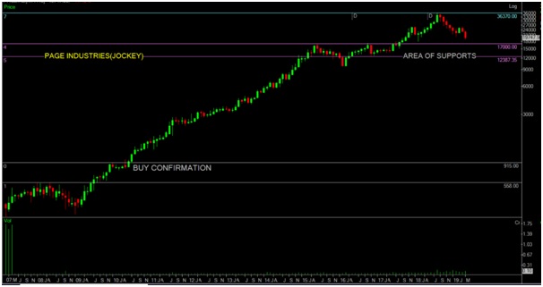 The above performance of SKF INDIA, a Bangalore based company shows the power of compounding. Stock had formed a bottom at 25 levels in the year 2001. One with a basic knowledge of technical’s like supports and resistances on the above chart could have multiplied his investment by 86 times in a span of 18 years or so by capturing the full trend. Hence, all investors should develop patience to make big money by investing in the long term with appropriate risk management in place.